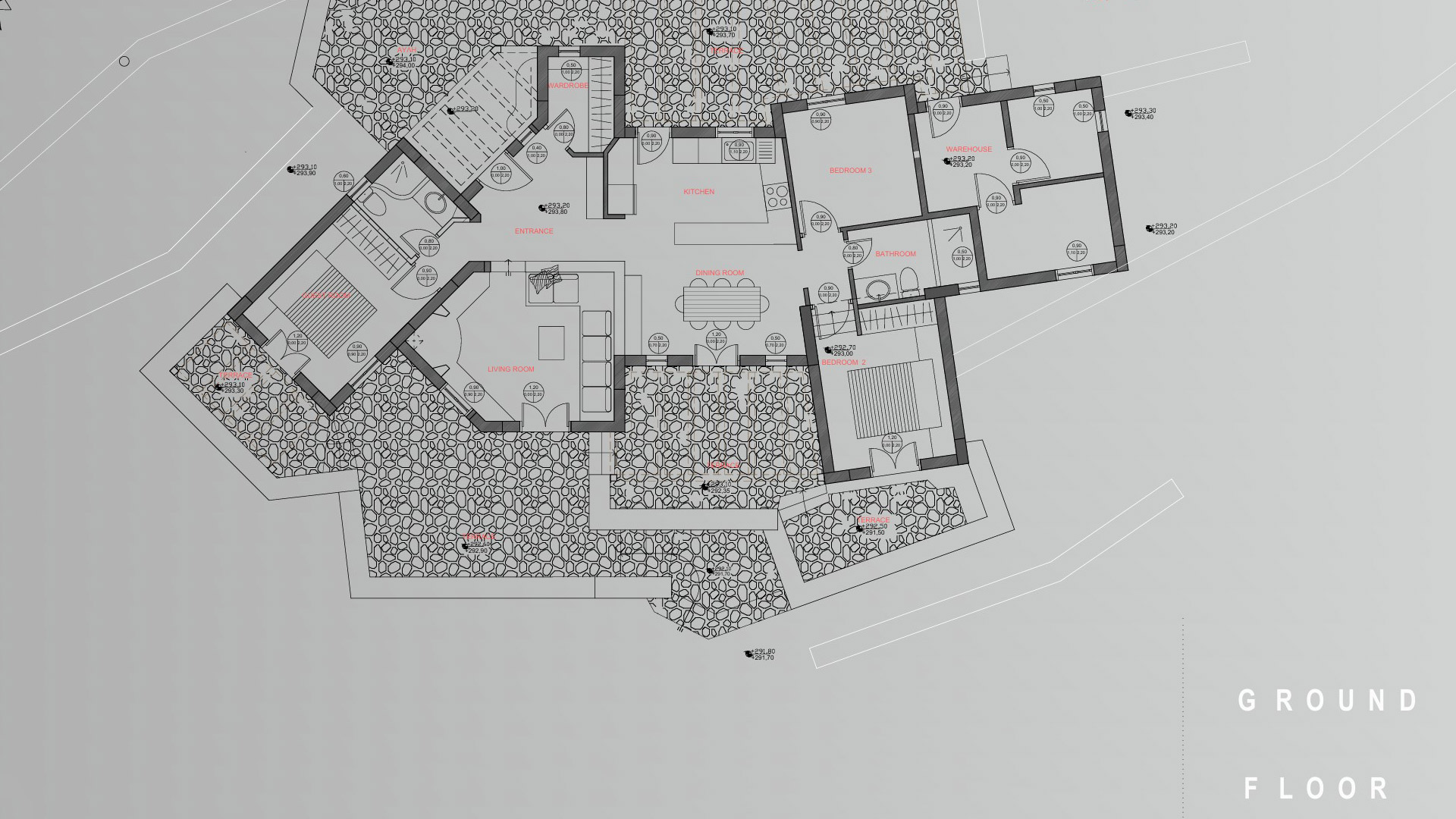 • Δημιουργία μεγάλων ανοιγμάτων για φυσικό φωτισμό και οπτική σύνδεση με τον κήπο. • Οργάνωση λειτουργικών χώρων κατοικίας με σαφή διαχωρισμό ιδιωτικών και κοινόχρηστων ζωνών. • Ενσωμάτωση σύγχρονων υλικών και αρχιτεκτονικών στοιχείων. |